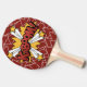 Kaboom Comic-Buch-ArtPing Pong Paddel für den SuperheroTischtennisspieler in Ihnen. Der überkomprimierte Entwurf ist auf beiden Seiten vom Klingeln pong Paddel im Rot und im Gelb.