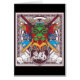 Bunter Entwurf der traditionellen und nicht so traditionellen Kabuki Maske. Samurai-Schwerter sind auch anwesend. Kabuki Maske