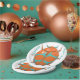 Der Käfer ist orange und türkis. Eine niedliche Insektenpapiertafel für das Party eines Jungen. Personalisieren Sie, wenn Sie möchten.