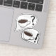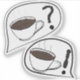 Das Bild zeigt zwei Sprechblasen, eine mit einer Dampftasse Kaffee und einem Fragezeichen, und die andere mit einer weiteren dampfenden Tasse Kaffee und einem Ausrufezeichen. Das Bild zeigt, dass jemand für ein Kaffeedatum frage und das andere mit Begeisterung.