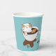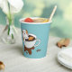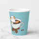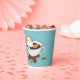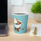 Die lustige Katze entspannt sich mit einem Kaffee, mit einem Croissant.