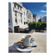 Auf einem sonnigen Balkon erwartet Sie eine weiße Kaffeetasse, die einen entspannenden Blick auf die lebhafte marokkanische Architektur und den blauen Himmel bietet.