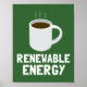 Geh grün und lass dir auch deinen Koffein geben. Diese einfache, lustige Grafik zeigt die erneuerbarste, nachhaltigste, umweltfreundlichste Energiequelle von allen - eine Tasse Kaffee! Die weiße Tasse steht über dem weißen Text, der lautet: "Erneuerbare Energie." Macht einen humorvollen Kommentar-Artikel für Ihren Lieblingsumschützer!