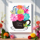 Tee-Cup Tee-Cup Art Poster Wall Kunst mit bunten rosa, rot, grün, orange, lila, grün, Aquarellfarben Blume. Sie können den Text auf dem schwarzen Becher ändern, indem Sie diese Vorlagenoption personalisieren. Eine wunderbare Ergänzung zu Küche, Esszimmer, Wohnzimmer, Veranda oder jedem anderen Raum in Ihrer Dekoration.
