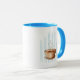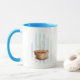 Illustration einer beruhigenden, dampfenden Tasse Kaffee (oder Tee!), Set vor einem blau-weiß gestreiften Hintergrund. Ideal, um als Einladung zum Brunch, Kaffee oder einfach nur zusammen zu kommen, oder als Hallo oder vermisste Sie Karte oder Geschenk. Besonders toll für Tee- oder Kaffeefreunde! Auch als schöne passende Karte, Postkarte, Briefmarke, Aufkleber, Mousepad, Tasche, Schürze, T - Shirt erhältlich.