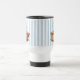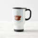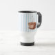 Illustration einer beruhigenden, dampfenden Tasse Kaffee-Set vor einem blau-weiß gestreiften Hintergrund. Ideal, um als Einladung zum Brunch, Kaffee oder einfach nur um mit koffeinliebenden Freunden zusammenzukommen! Entspricht auch den