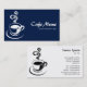 Eine Visitenkartenvorlage mit einem attraktiven Kaffeetassen-Motiv. Firmendetails auf der Vorderseite mit Namen und Kontaktdaten auf der Rückseite mit einer Wiederholung des Motivs. In dieser Version ist das Motiv vorne weiß auf schwarz oder dunkel. Das Motiv auf der Rückseite schwarz auf weiß oder ein heller Ton. Diese Karte kann auch auf viele Arten angepasst werden.