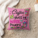 Farbenfrohe Pflegekissen im Design werfen Kissen mit gefärbte Krawatte und coolen Farben Stethoskop, Bandagen, Pillen, Herz, und eine Tasse Kaffee mit Text, der Coffee gibt mir Krankenpflege Power!
