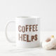 Kaffee hilft lustiges Retro-Typografie-Sprichwort Kaffeetasse