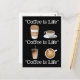 Grüße aus dem koffeinierten Paradies, bekannt als "Kaffee ist das Leben"! Wir haben eine Postkarte erstellt, die unsere gemeinsame Besessenheit mit dem flüssigen Gold verkörpert, das unsere Existenz antreibt. Stellen Sie sich vor: eine faszinierende Momentaufnahme einer perfekt gebrauten Tasse Kaffee, die mit dem Versprechen von Energie und purer Freude strahlt. Wenn man diese Postkarte an einen glücklichen Empfänger schickt, teilt man nicht nur einen malerischen Moment, sondern man sendet eine kraftvolle Erklärung, dass Kaffee das Elixier des Lebens selbst ist. Denn, seien wir echt, wer braucht Wasser, wenn man sich mit einer heißen Tasse Joe hydrieren kann? Also, schicken Sie diese Postkarte und verbreiten Sie das Evangelium unseres geliebten Getränks in alle Winkel der Welt. Aber man muss gewarnt werden, sobald sie sie empfangen, werden sie die Welt vielleicht nie wieder so sehen wie früher. Kaffeeliebhaber vereinen sich! Für Liebhaber von Espresso,Cappuccino,Latte,Americano,Mocha,Flachweiß,Macchiato,Affogato,Cortado,Irish Coffee,Türkischer Kaffee,Vietnamesischer Kaffee,Äthiopischer Kaffee,Kolumbianischer Kaffee,brasilianischer Kaffee,Französische Presse,Pour Over,Aeropress,Chemex,Tropfen-Kaffee,Salzwasser,Ro Cold Brew,Eistee,Frappuccino,Café au Lait,Rotes Auge,Long Black,Ristretto,Lungo,Piccolo Latte,Wiener Kaffee,Bulletsischer Kaffee,Mexikanischer Kaffee,Jamaikanischer Kaffee,Griechischer Kaffee,kubanischer Kaffee,Thailändischer Kaffee,Spanischer Latein,Coconut Latte,Hazelie te,Vanilla Latte,Caramel Macchiato,PumpkinspeckLatte,Maple Pecan Latte,Mandelmilch Latte,Hafermilch,Zimtlatte, Weißschokoladenmocha,Pfefferminzmocha,Bronkaffee,Schwarzer Kaffee,Kaffeemaschine,Frappe,Blended-Kaffee Eigentümer des Shops, Barista
