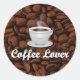 Kaffee Lover, White Cup/Brown Bohnen Runder Aufkleber