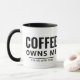 Genießen Sie Ihre Coffeinsucht mit dieser unglaublich witzig "Coffee Owns Me"-Tasse! Ideal für Büro Humor, Arbeitsgeschenke oder eine angenehme Küchendekoration. Holt 11oz Ihrer Lieblingsbraue in der Keramik für Geschirrspüler. [ALT text: Sarcastic "Coffee Owns Me" zitierte Tasse, lustiges Geschenk für Kaffeesüchtige und Büroangestellte]