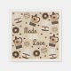 Cocktail-Servietten "Made with Liebe" mit niedlicher illustrierter Dampf-Tasse Kaffee und passender Kaffeekanne mit Herz und Donuts dekoriert. Ideal, um hausgemachte Kuchen und Kekse zu genießen.