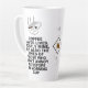 Mit dieser personalisierbaren "Coffee Rette Lives Meme" hohen Latte-Tasse können Sie Ihre Morgenroutine steigern! Zeigen Sie Ihre Persönlichkeit und Liebe für Kaffee mit einem personalisierten lustigen Zitat. Diese extra große Tasse ist perfekt für diejenigen, die eine ernsthafte Koffeinbehandlung benötigen. Es ist aus einer langlebigen, hochwertigen Keramik gemacht und sowohl stilvoll als auch praktisch. Mit der Sonderangebotsoption lasse man sich, ein wirklich einzigartiges und unglaublich witzig Stück zu kreieren, was es zu einem fantastischen Geschenk macht oder zu einer lustigen Ergänzung Ihrer eigenen Kollektion wird. Lassen Sie sich von dieser trendigen Meme-inspiriert Tasse überzeugen - das ist die perfekte Mischung aus Spaß und Funktionalität!