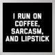 "Ich laufe auf Kaffee, Sarkasmus und Lippenstift" lustiges Zitat.