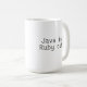 Java herein. Rubin heraus. Tasse für einen Rubin auf Schienenprogrammierer