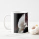 Die Tasse des Kaffees in Weiß mit einem hübschen Dove-Foto-Druck, Beschriftung sagt: "Ich verließ mit dir mein Frieden". Passen Sie dieses Objekt an oder kaufen Sie, wie es ist. Bild
