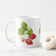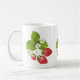Diese Keramikkaffee-Tasse wird mit einer niedlichen Sommerzeitfrucht des Erdbeerdruckes gezeigt.
