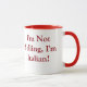 Tasse des weißen Kaffees mit grüner Kante und Griff mit italienischem Sprichwort ", das ich nicht schreie, bin ich italienisch"