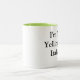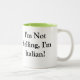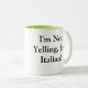 Tasse des weißen Kaffees mit grünem Innenraum mit italienischem Sprichwort ", das ich nicht schreie, bin ich italienisch"