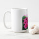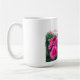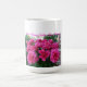 Ein schöner Blumenstrauß von Dutzend Rosen des heißen Rosas auf einem großen Weiß 15 Unze. Tasse. Aufgeprägt mit Santa- Claritatal-Rosen-Gesellschaft