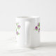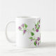 Diese Keramik Kaffee-Tasse wird mit einem hübschen lila, süßen Erbsenprint gezeigt. Passen Sie dieses Objekt an oder kaufen Sie, wie es ist. Bild
