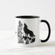 Diese Keramik Kaffee-Tasse wird mit einem Kunstdruck eines Wolfs mit Yellowstone-Text gezeigt. Schwarzes Interieur und Griff. Passen Sie dieses Objekt an oder kaufen Sie, wie es ist.