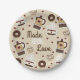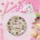 Niedliche illustrierte dämpfende Schale des Kaffees und des zusammenpassenden Kaffeetopfentwurfs, die mit Krapfen und Herzen auf "verziert wurde, machte mit dem Liebe" Papier-Teller, der für selbst gemachte Kuchen und Nachtische oben anrichten ideal ist.