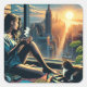 Kaffee trinken Frauen bei Sonnenaufgang in der Sta Quadratischer Aufkleber