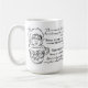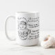 Tasse mit berühmten Zitaten über Kaffee und Tee und eine Selbstporträtillustration durch Jean Fogelberg.