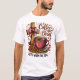 Dieser weiße T - Shirt ist dekorativ gestaltet und verbindet Christlichen Glaube mit einer Liebe für Kaffee. Ein Holzkreuz mit rosafarbenem Bogen steht neben einer dampfenden roten Kaffeetasse auf einer Untertasse, umgeben von verstreuten Kaffeebohnen und stilisierten Blätter und Wirbel. Der Text "Kaffee UND Christus" ragt über der Kaffeetasse in einem eleganten braunen Schriftsatz, während die Phrase "BEIDES WARM DAS SOUL" unten in einem ähnlichen braunen Schriftsatz dargestellt wird. Kleine Herzen und dekorative Elemente vermischen sich im gesamten Design. Dieses Shirt drückt die Wertschätzung des Trägers für den spirituellen Komfort und die Wärme des Kaffees aus.