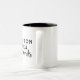Dieser kühne, schwarz-weiße Kaffeetasse zeichnet sich durch eine einzigartige Schrift und eine lustige Botschaft aus.