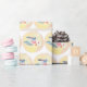 Kaffee und Donuts Packpapier in einer blassgelben Farbe. fröhlich und anders. Dank der Hungryjpeg und Creative Fabrica für einige der Elemente im Design.