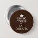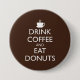 Der Knopf für Kaffee und Donuts ist für Liebhaber einer Kaffeetasse mit "KAFFEE UND ESSEN SPENDE". Design basiert auf dem britischen Moralposter "Keep Calm and Carry On" aus dem Jahr 1939. Für Kaffeeliebhaber.