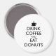 Magnet mit einer Kaffeetasse mit "KAFFEE UND ESSEN SPENDE". Design basiert auf dem britischen Moralposter "Keep Calm and Carry On" aus dem Jahr 1939. Für Kaffeeliebhaber.
