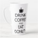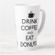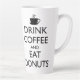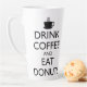 Ein Shirt für Kaffee- und Donuts-Liebhaber mit einer Kaffeetasse mit "DRINK COFFEE AND EAT DONUTS". Design basiert auf dem britischen Moralposter "Keep Calm and Carry On" aus dem Jahr 1939. Für Kaffeeliebhaber.