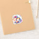 Ein hübsches azurfarbenes Geburtstagskuchen mit rosa und lila Blumen und Rose neben einer Tasse Kaffee oder einem ausdrucksvoll hübschen Blumengeburtsticker.