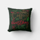 Fun Christmas throw illow bietet eine Tasse Kaffee und Text von grün, rot und braun liest I Run on Coffee and Christmas Cheer!