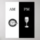 Teilweise in zwei gleiche Teile für Morgen und Abend. Vormittags weiß mit schwarzen Illustrationen und benutzerdefinierten Skript und Abend Seite schwarz mit weißen Illustrationen und benutzerdefinierte Skript.