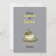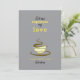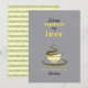 Einfache, niedliche, gelbe und graue Valentintagskarte mit Espressotasse zeichnend und lustigen Liebe Zitat.