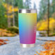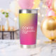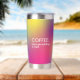 Thermalkaffeemaschine mit Zitat "Kaffee, weil das Erwachsen hart ist" mit lebhaftem coolen Farbverlauf.