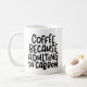 ©2020, spanisches handgeschriebenes Design von Dio Perez, lautet: "Kaffee, weil Ehebruch auf Cabrón".