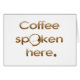 Tragen Sie Ihre Koffeinsucht mit Stolz! Design verkündet "Kaffee spricht hier" mit einem großen Kaffeering in der Mitte. Mocha, java, latte, espresso, cappuccino - egal, wie Sie es nennen, sprechen Sie die Sprache! Ideal für den Gebrauch im Café, im Studentenwohnheim oder auf der TV-Couch.
