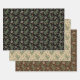 Kaffeebaum mit Blume und Bohnen auf schwarzem, beigem und braunem Hintergrund.