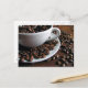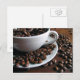 Röstkaffeebohnen und Postkarte für den Becherausdruck