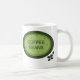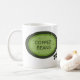 Ein modernes Kaffeezeichen sagt "Kaffeebohnen in den Farben grün und braun. Ein paar lose Kaffeebohnen daneben.