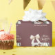 Ein gedämpfter kaffeebräunlicher Hintergrund, cremefarbener Text und ein Bogen. Text und Foto. Frohe Weihnachten wird mit einem eleganten, handgeschriebenen Schriftart geschrieben. Personalisieren Sie Ihren Familiennamen und fügen Sie ihn hinzu.