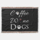 Die perfekte Werftdecke für diejenigen, die Liebe von Kaffee, Wein und Hunden. Das Throw-Decke-Design enthält einen extravaganten Kaffeetext mit einem Kaffeetassen-Dekor für den Buchstaben "o", Wein mit einem Rotwein für den Buchstaben "i" und Hunde mit einem Pfotenprint als Ersatz für das "o". Auch zusätzliche Geschenkartikel sind in diesem Design erhältlich.