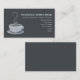 Eine Visitenkarte mit einem Foto einer Tafel, die eine Tasse heißen Kaffee zeichne, der auf einer Untertasse sitzt. Personalisieren Sie Ihre Namen und Geschäftsinformationen.