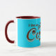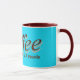 Fun brauner Kaffee Zitat auf Weiß und Aqua Button Punktmuster.